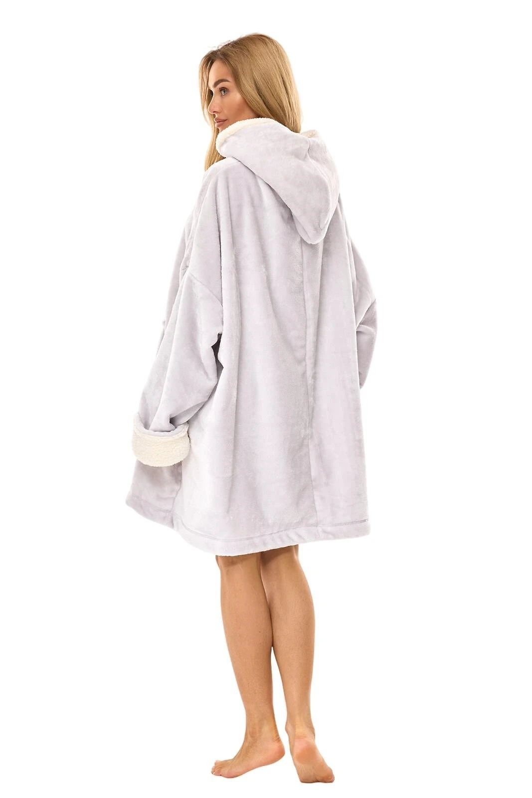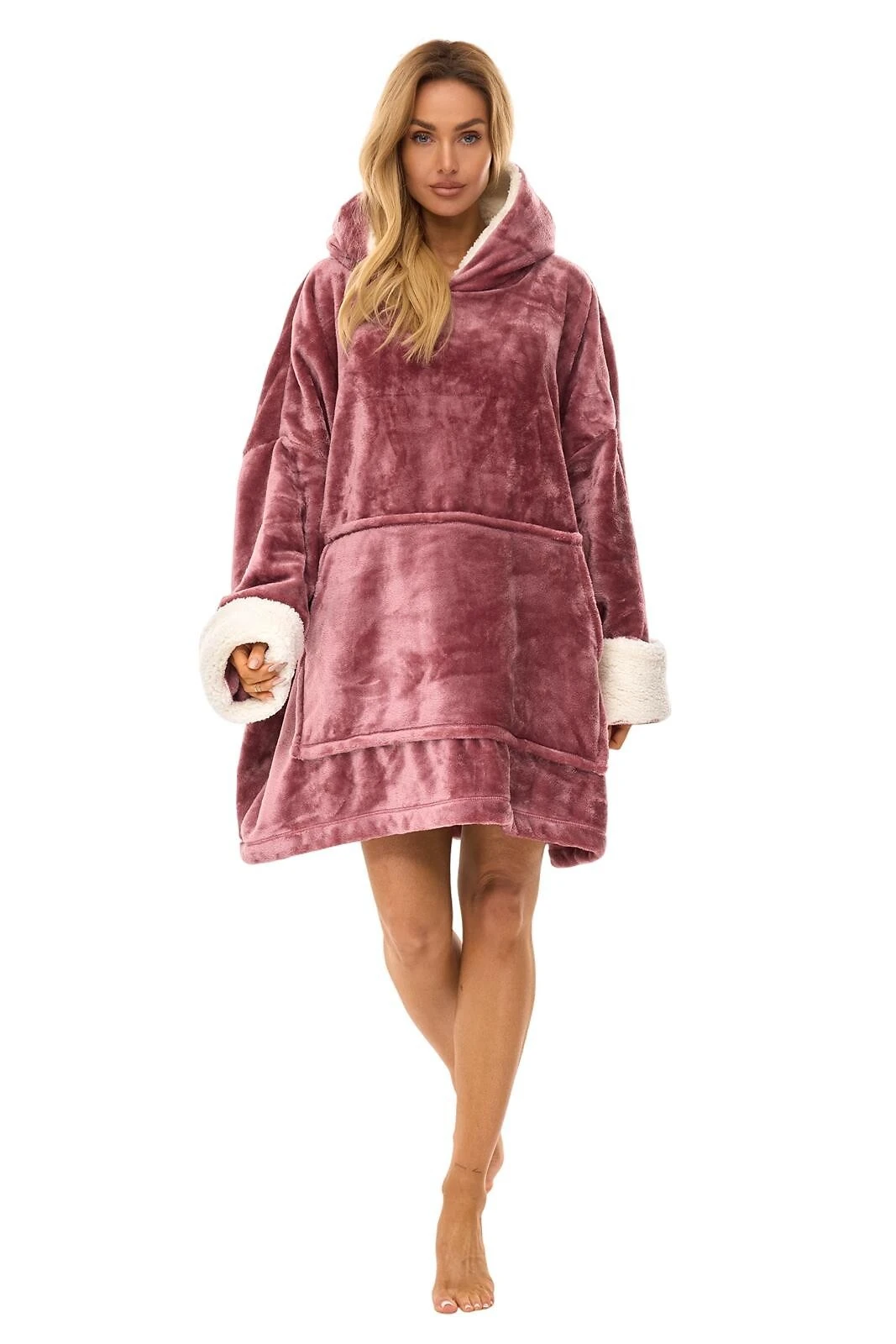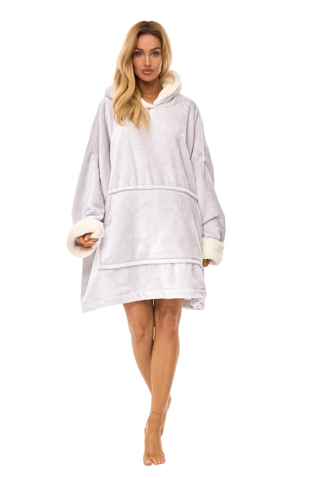 Modelis turi patogų kapišoną su vidine „baranko“ tipo apdaila, kuri suteikia dar daugiau jaukumo. Plačios rankovės su atvartais ir priekyje esanti didelė „kengūros“ tipo kišenė suteikia praktiškumo ir stilingo laisvalaikio pojūtį. Universalus dydis prisitaiko prie įvairių figūrų, todėl chalatas puikiai tinka kiekvienai moteriai.