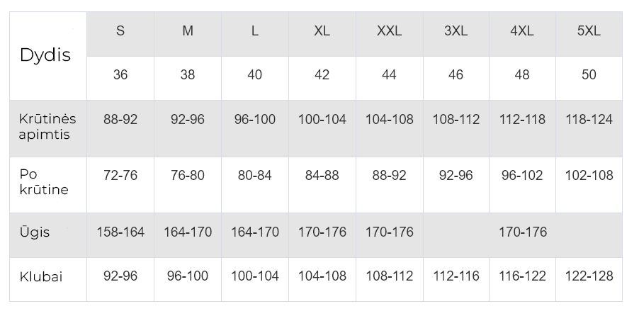 Jei nesate tikri, kurį dydį pasirinkti, galite mums parašyti žinutę arba el. laišką adresu [email protected]. Mielai atsakysime į Jūsų klausimus ir padėsime išsirinkti tinkamą dydį!
