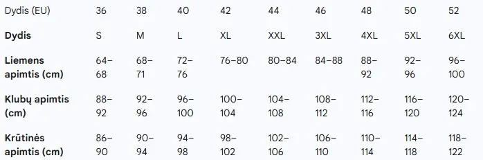 Jei nesate tikri, kurį dydį pasirinkti, galite mums parašyti žinutę arba el. laišką adresu [email protected]. Mielai atsakysime į Jūsų klausimus ir padėsime išsirinkti tinkamą dydį!