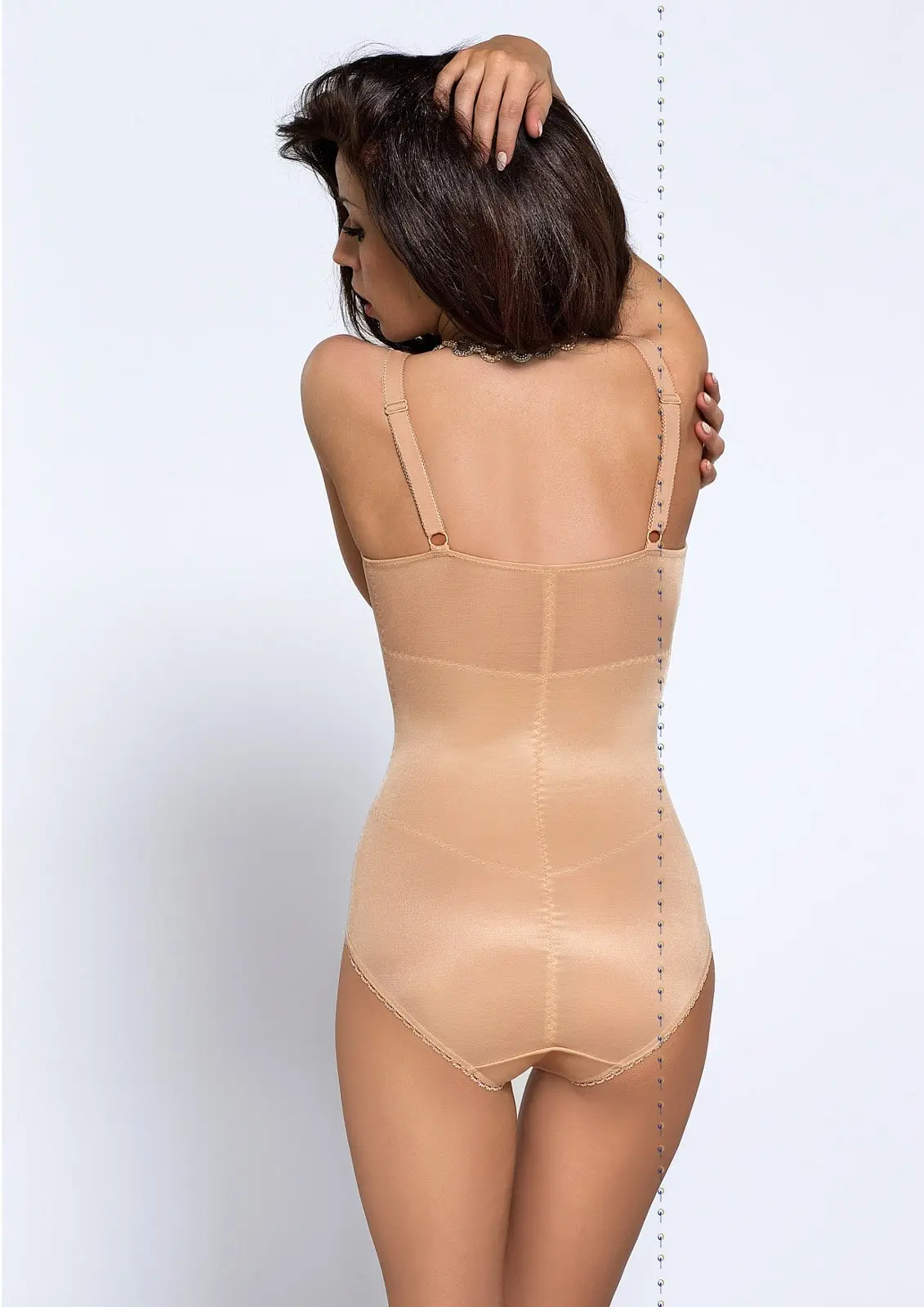 Elegantiškas ir patogus moteriškas bodis su siauromis reguliuojamomis petnešėlėmis. Puikiai modeliuoja figūrą – koreguoja pilvuką ir sėdmenis, o dėl atviro kirpimo neuždengia biusto. Idealus pasirinkimas po suknelėmis, suteikiantis komfortą visai dienai.